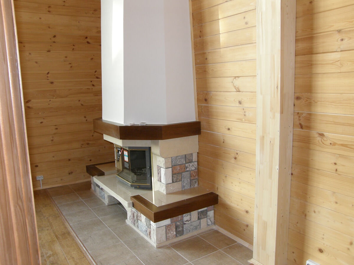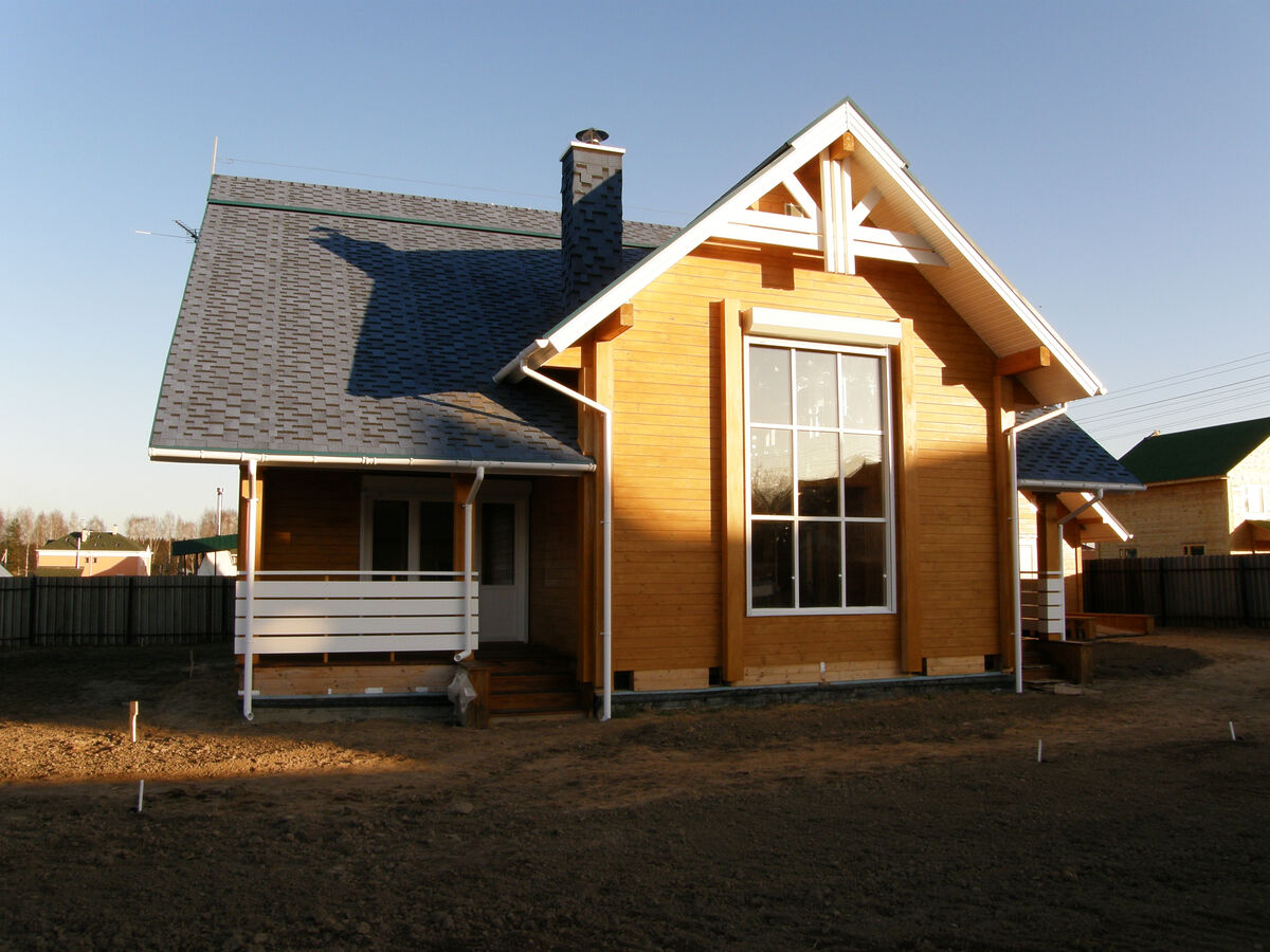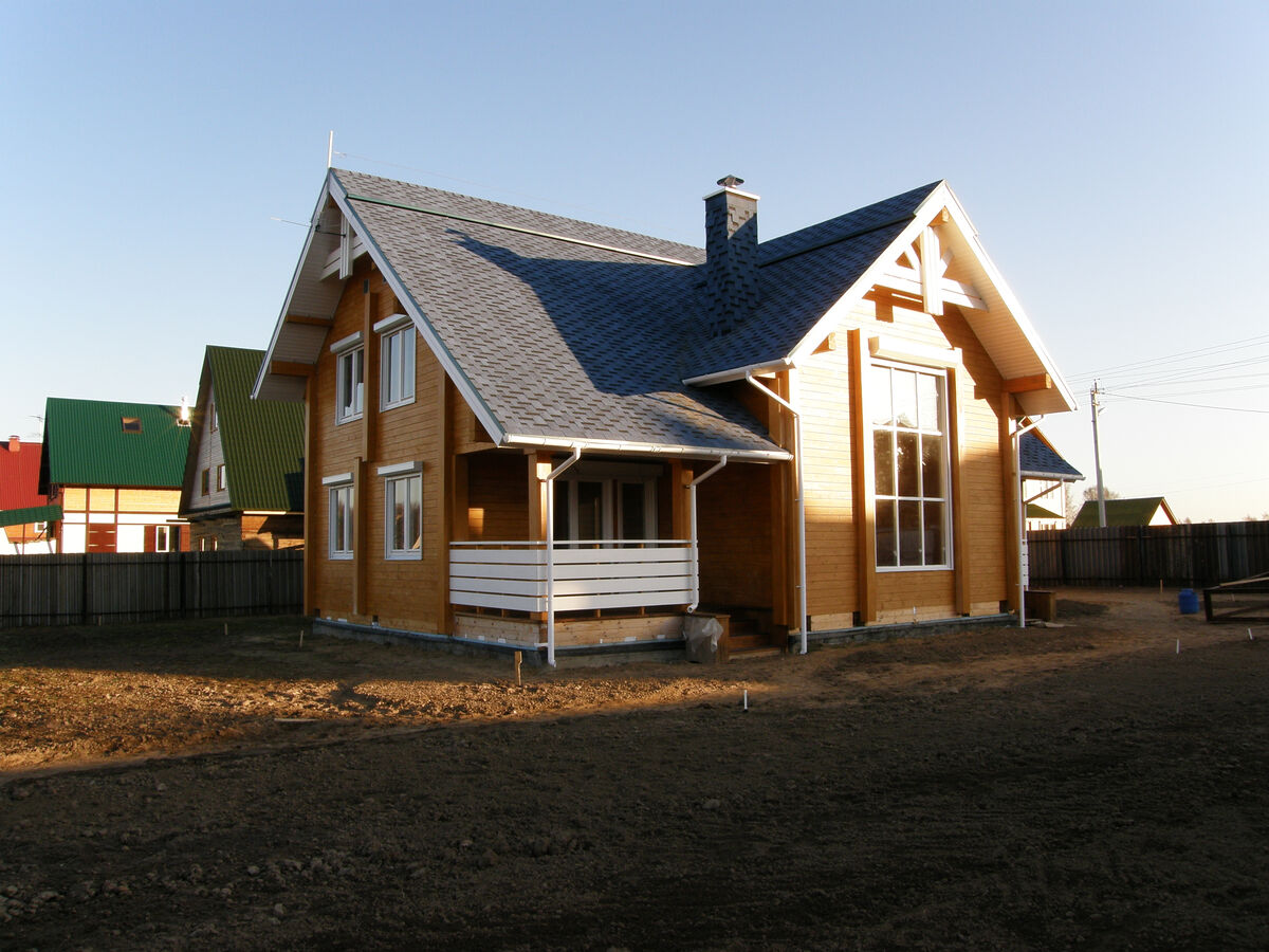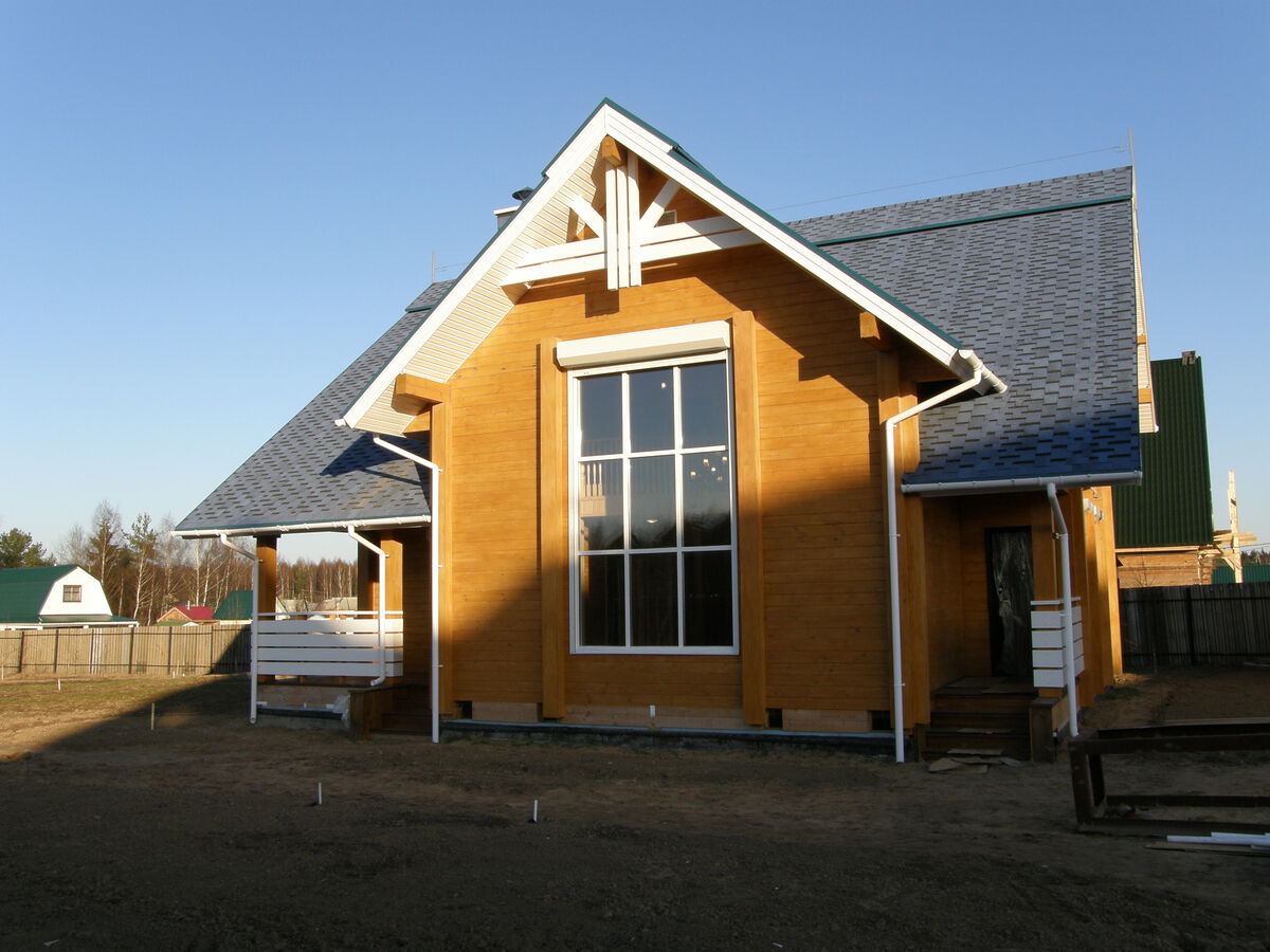 Оригинальный и просторный двухэтажный коттедж из клееного бруса с камином.
