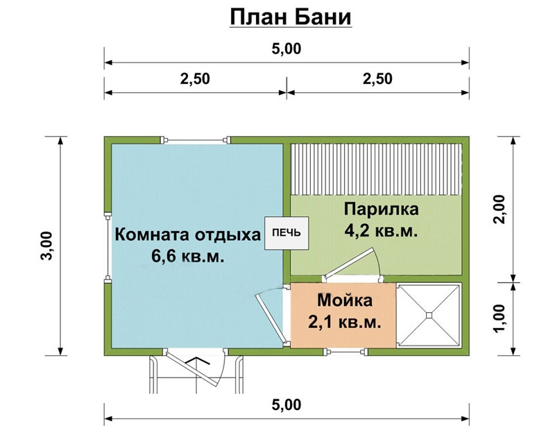 БАНЯ ИЗ БРУСА 3Х5М (3 ОТДЕЛЕНИЯ)