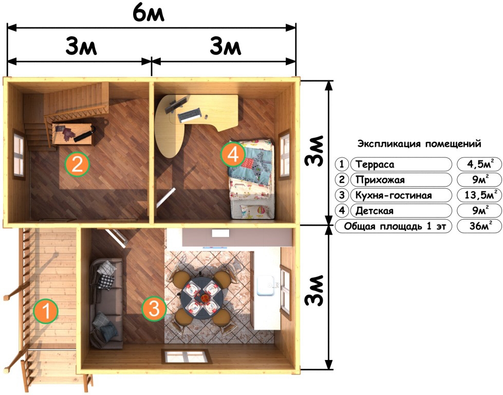 | Полы | Настил из ДСП листов | Шпунтованная доска 36мм. |